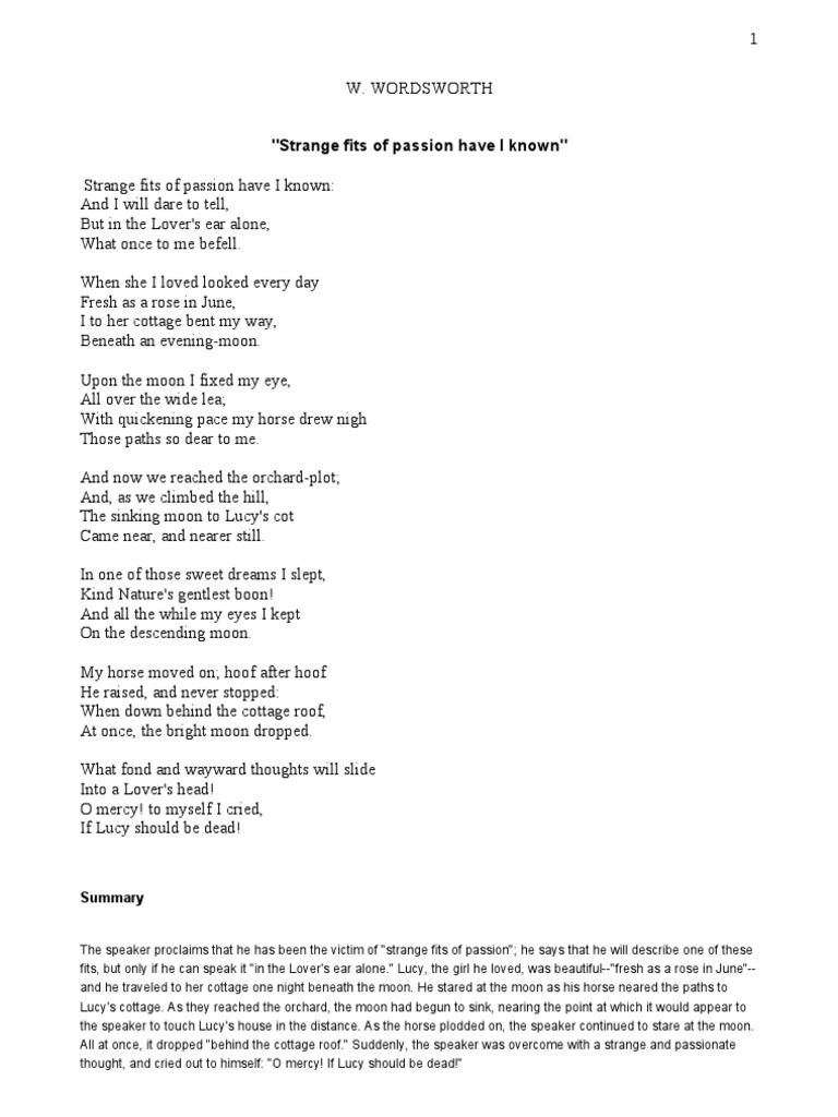 We can open a book by Margaret Atwood almost at. The second Lucy poem confirms what Strange fits of passion suggested. The character of Lucy is often interpreted as a personification of the speakers poetic muse.